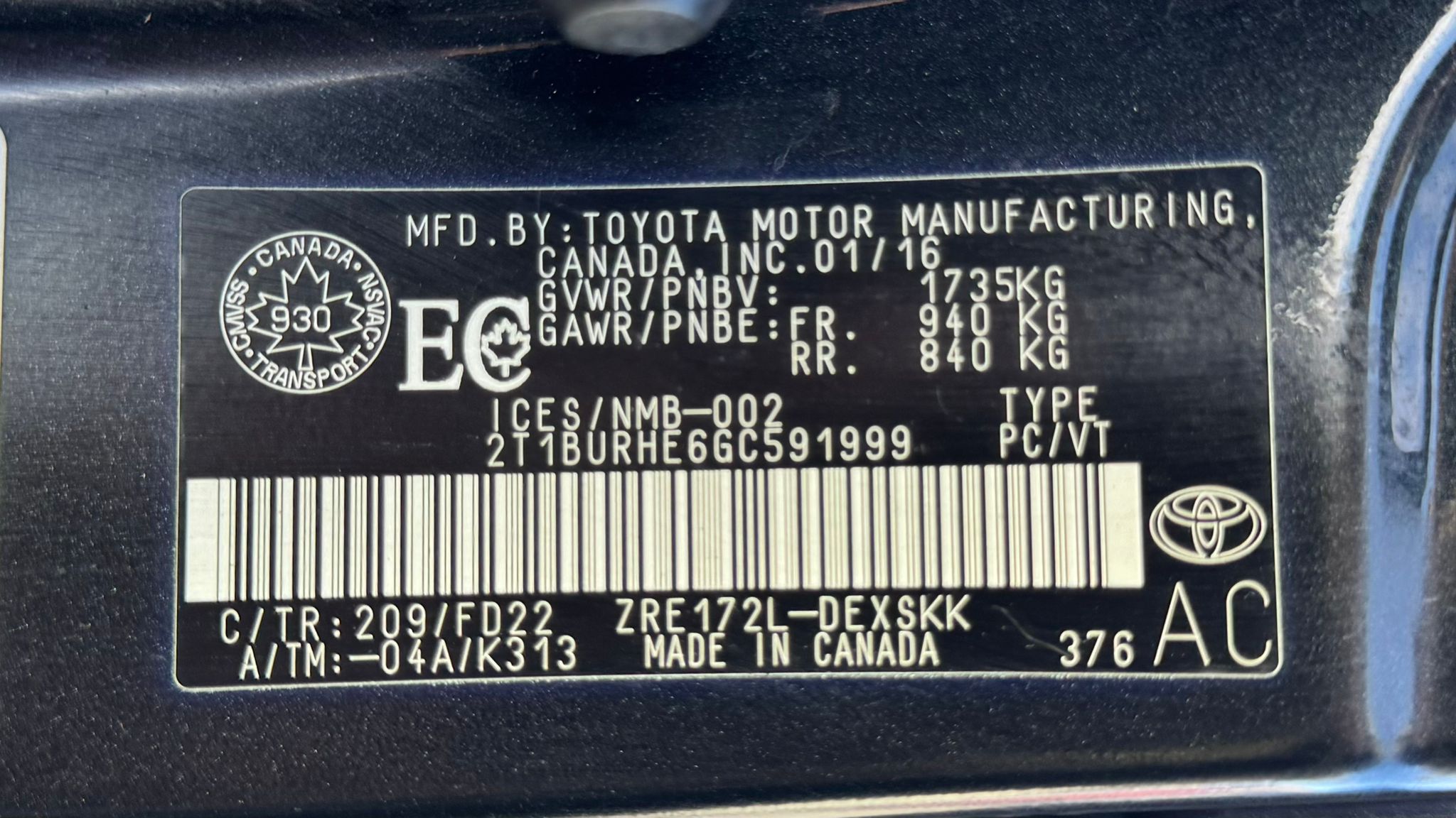 2T1BURHE6GC591999